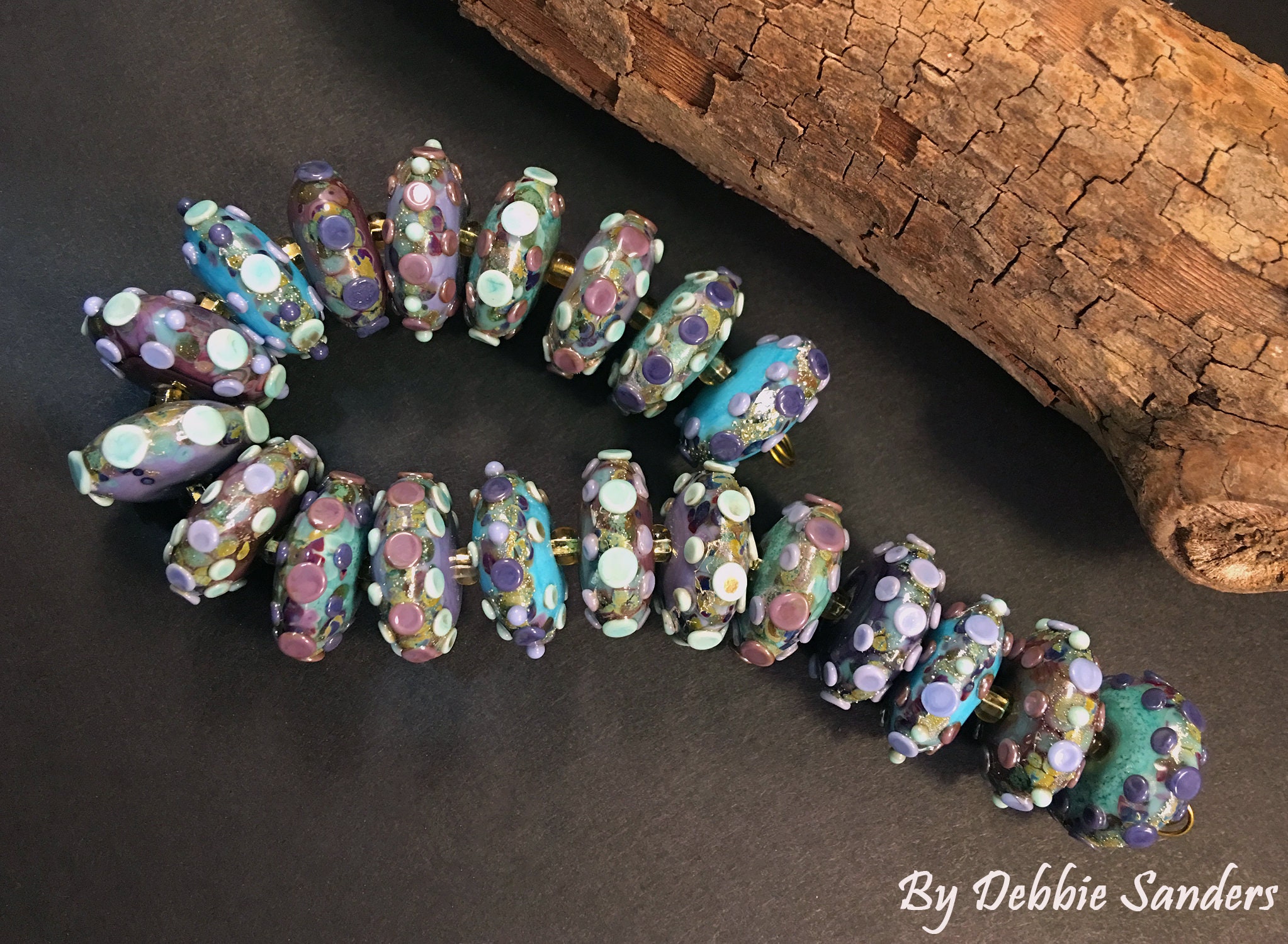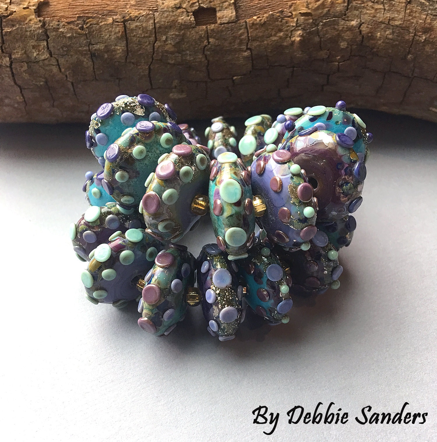 I use Moretti, Double-Helix, R4, CIM, Kugler, Lauscha and Vetrofond glass. I also use 3/32 mandrels, unless otherwise stated. All my beads are put in a digitally controlled kiln over night to ensure their quality. The actual colors of my beads may differ slightly from what you see due to different settings on monitors. Hopefully my description will help with that!