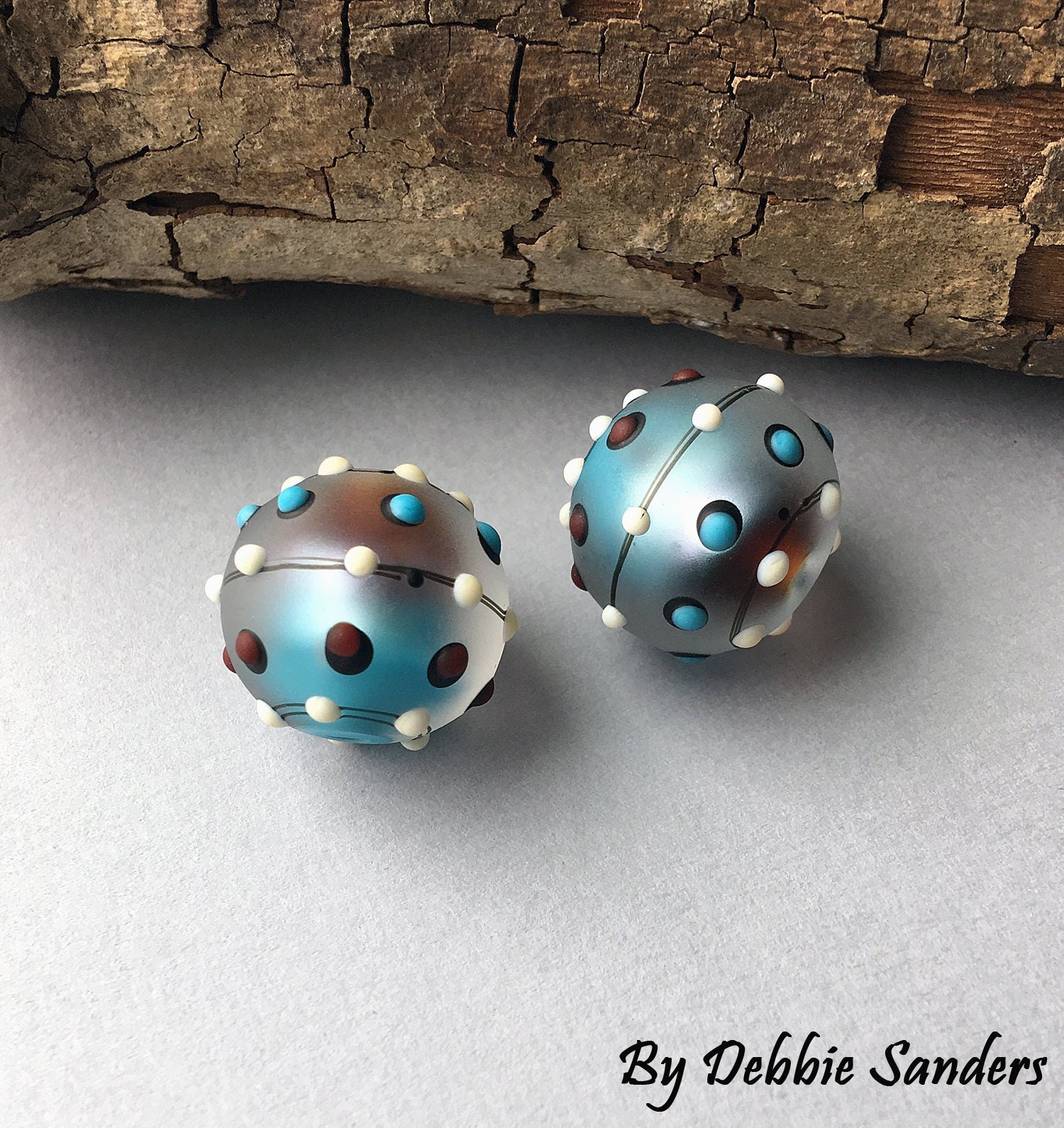 I use Moretti, Double-Helix, R4, CIM, Kugler, Lauscha and Vetrofond glass. I also use 3/32 mandrels, unless otherwise stated. All my beads are put in a digitally controlled kiln over night to ensure their quality. The actual colors of my beads may differ slightly from what you see due to different settings on monitors. Hopefully my description will help with that!